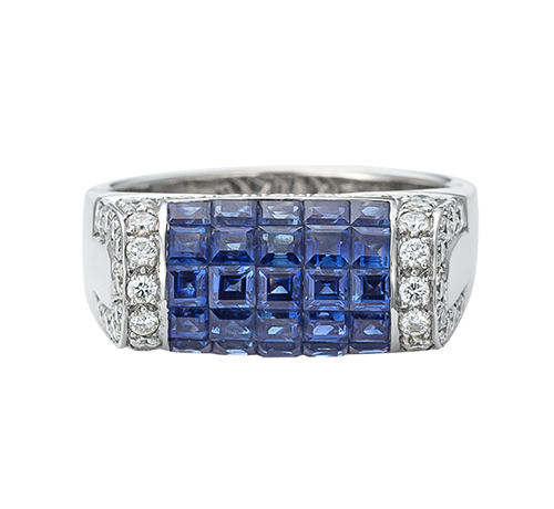 ルビー・スリーロウ・ジオメトリック・リング